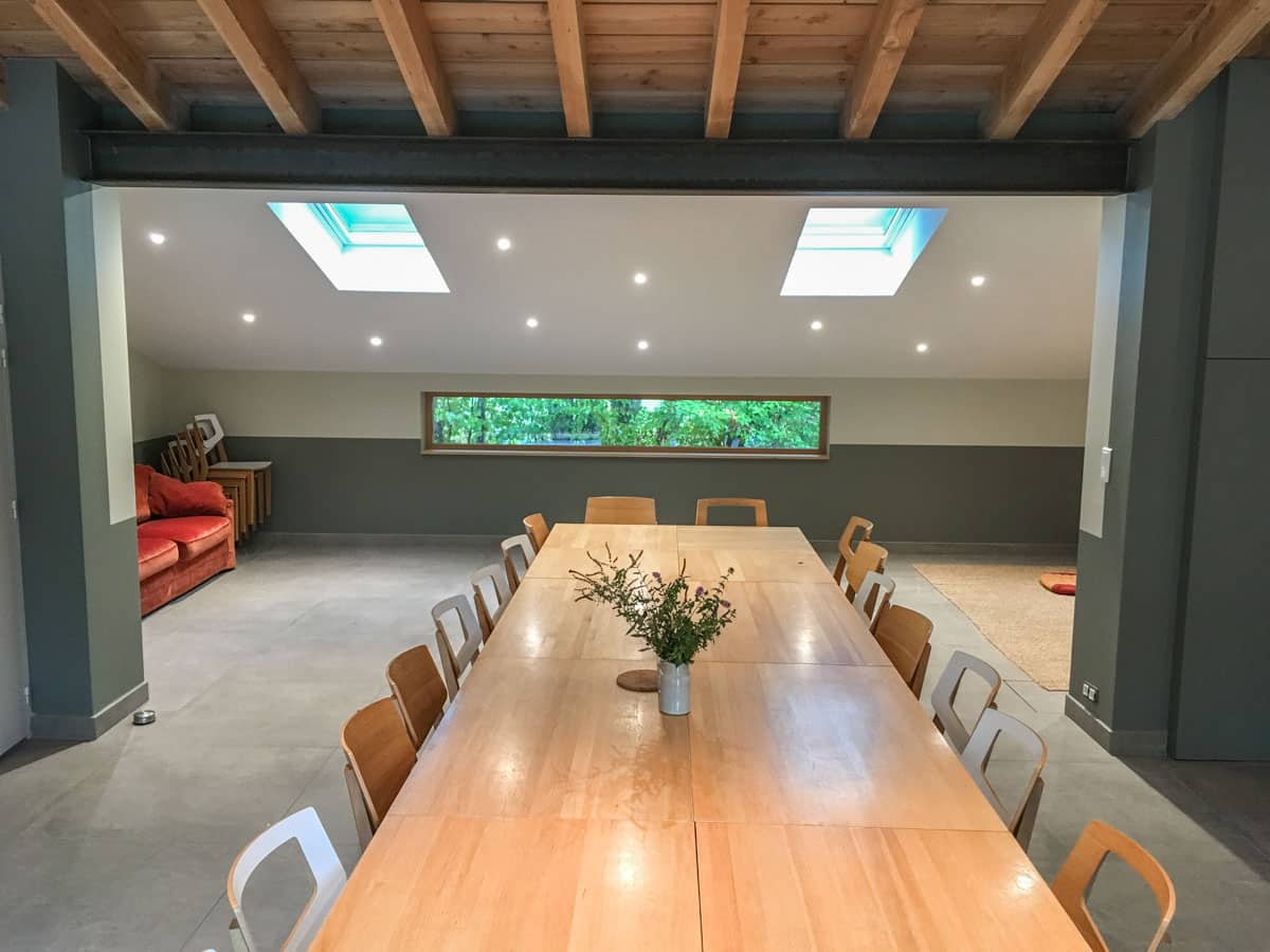 Voor uw familie- of professionele bijeenkomsten, uw familiefeesten, uw kook-, yoga-, meditatie- en schilderworkshops… de natuurseminars of de groene seminars, hebben we de Tuinkamer ontworpen.